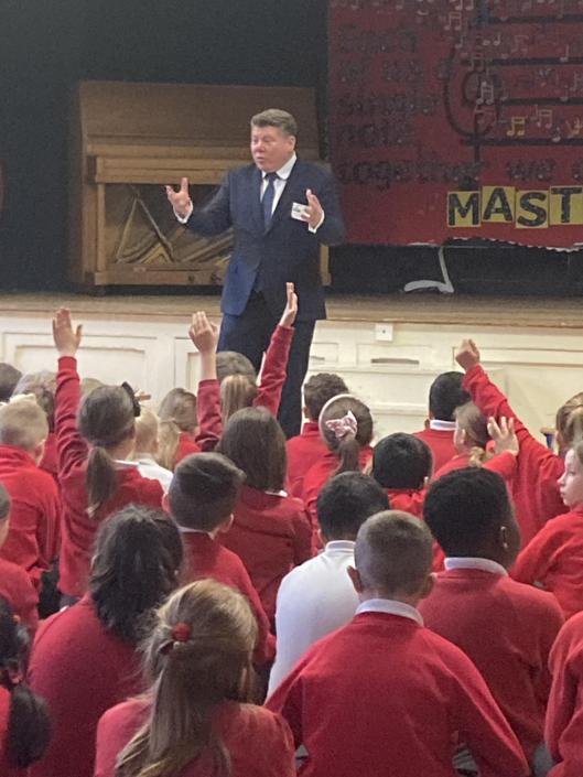 On Friday 21st April we had a visit from Dean Russell, who is Watford's Member of Parliament (MP). He talked to the whole school about his life and work in assembly and everyone got to ask him questions. Some of the questions were: "Do you like your job?", "How did you get your job?" "What do you like doing in your spare time?" "Teachers are striking because they don't get paid enough. How is that going to be sorted out?" "Why do Prime Ministers keep resigning?" "Do you think there are any new laws that need to be made?" "Do you get to go to parties as part of your job?"
